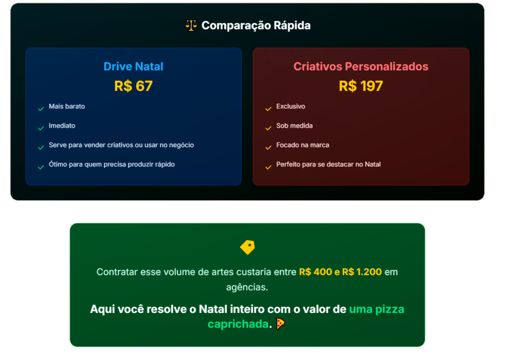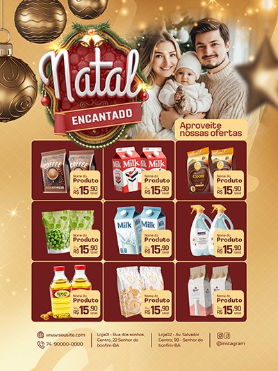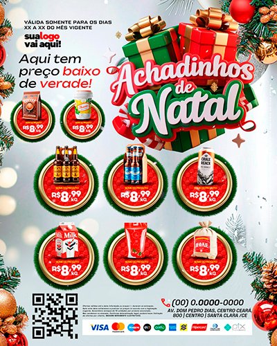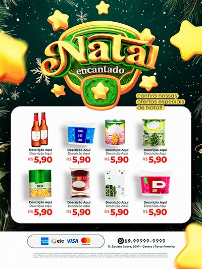 Designs feitos para conversão: ofertas, combos, produtos, serviços e chamadas que estimulam a compra por impulso do Natal.