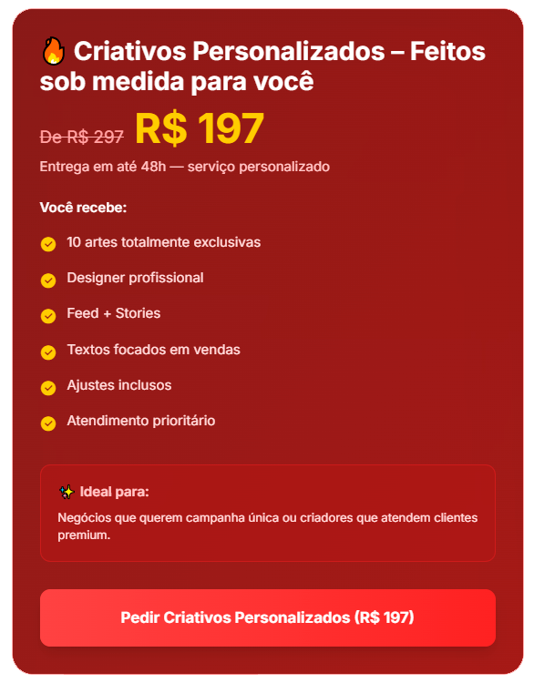 Criativos natalinos chamam mais atenção e fazem sua marca se destacar no feed — aumentando cliques, pedidos e mensagens já nos primeiros dias.